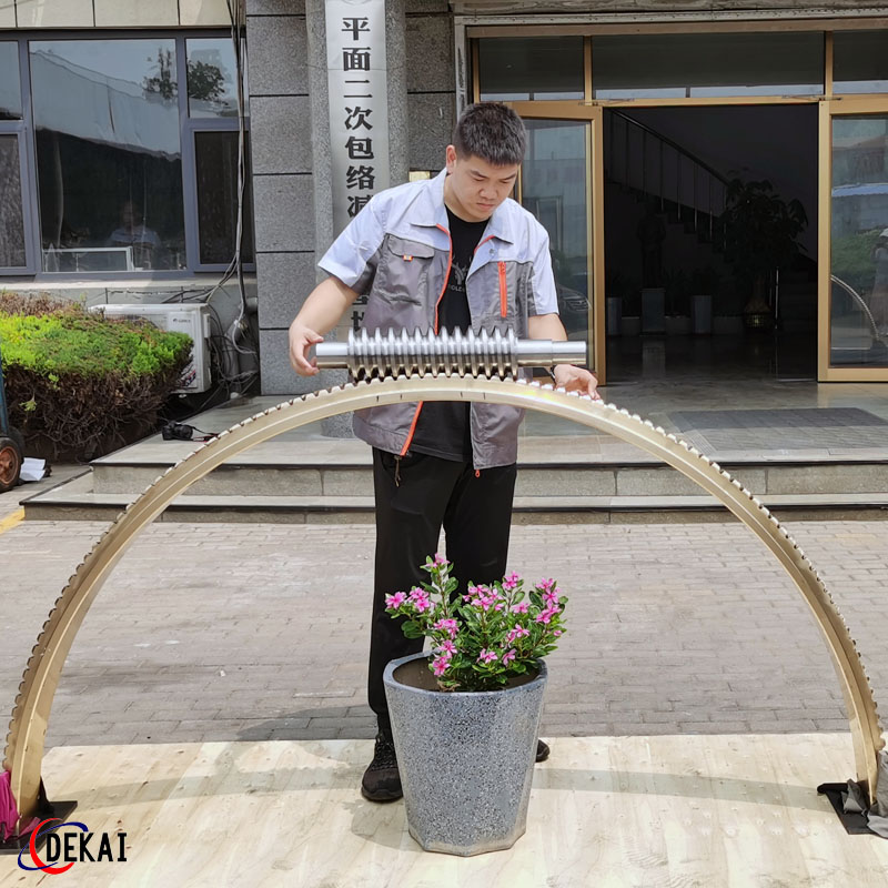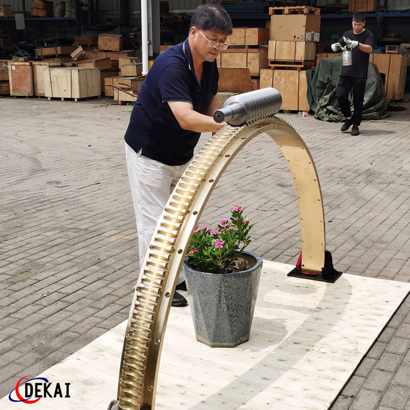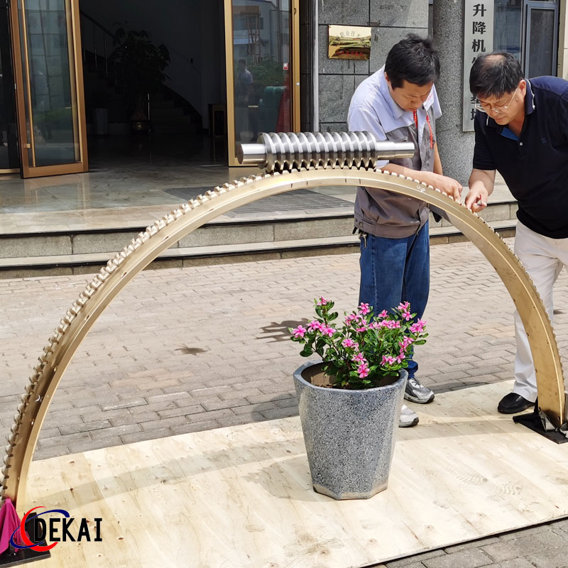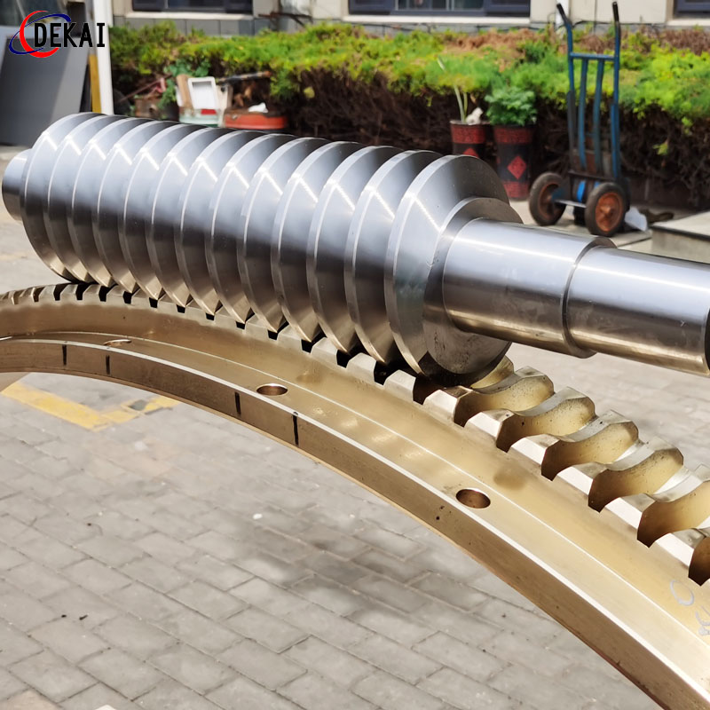 德州德凱減速傳動機(jī)械有限公司采用雙蝸桿對消隙原理開發(fā)生產(chǎn)的精密蝸輪蝸桿副,主要用于大型機(jī)床工作臺的驅(qū)動,高精密分割器等無間隙圓周運動精確定位場合。該蝸輪副中心距最大可做到2000mm,單節(jié)速比可做到1-365同時不產(chǎn)生回程間隙。