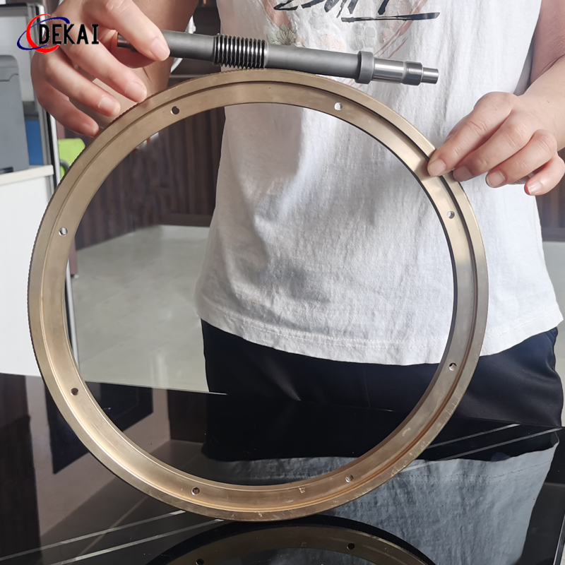 精密雙導(dǎo)程蝸桿副的優(yōu)點:分度精度高,側(cè)隙可調(diào)整至0.01~0.03Mmm;齒面接觸穩(wěn),不會改變中心距。調(diào)整標(biāo)準(zhǔn),方便可靠。裝配靈活,裝配時,用調(diào)整環(huán)來獲得合適的嚙合側(cè)隙。使用中如果因為磨損導(dǎo)致傳動間隙增大,只要調(diào)整一下蝸桿的軸向位置,可以使蝸桿蝸輪傳動副恢復(fù)到原來的精度,不需要更換新的蝸桿,蝸輪,比較實用。蝸桿材質(zhì)采用40Cr,42CrMo、38CrMoAl合金鋼。蝸桿采用錫青銅ZCuSn10Pb1離心澆鑄,具有高強(qiáng)度耐磨性。