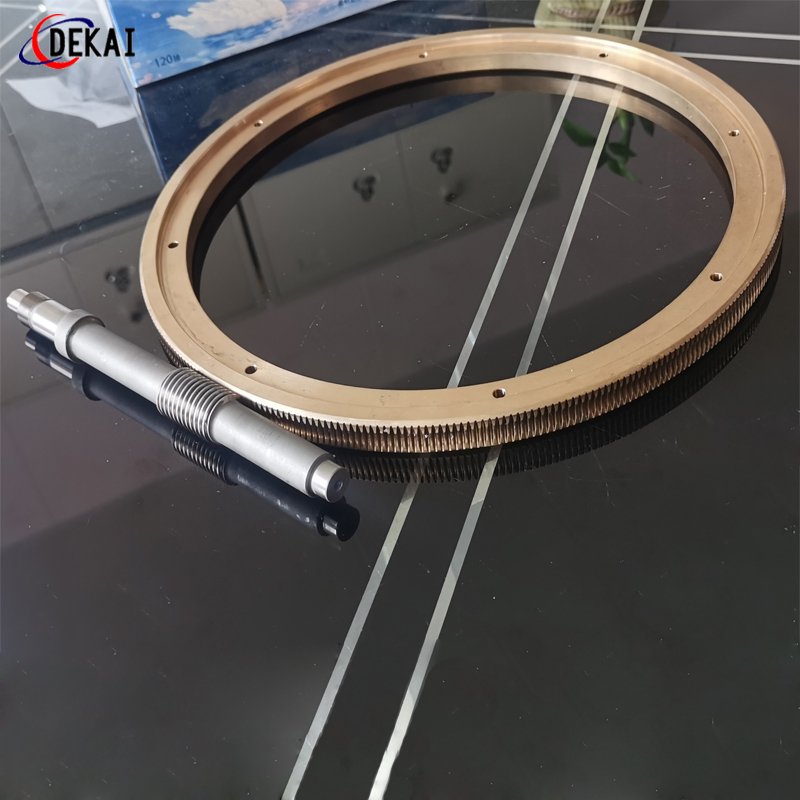 蝸輪系統(tǒng):材質(zhì):蝸輪特殊高強(qiáng)力鋁青銅合金;蝸桿:38CrMoAl合金鋼,正?;鬂B碳HRC60以上。